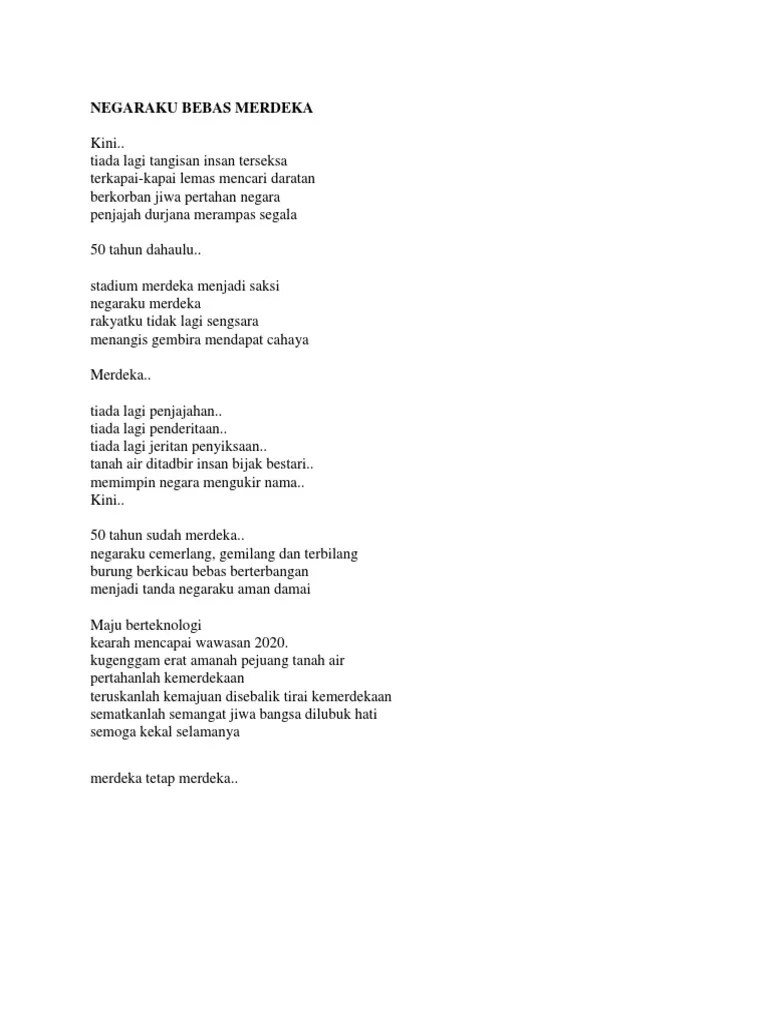 Berikut adalah contoh puisi kemerdekaan untuk anak sd, smp dan sma untuk menyambut hari kemerdekaan republik indonesia. Genangan darah tumpah di atas tanah tak bertuan. Salah satu prosa yang memiliki bentuk lebih pendek dari pantun. Ini adalah contoh puisi tentang kemerdekaan singkat yang membuat terenyuh hati. Puisi singkat tentang hari kemerdekaan republik indonesia ini bisa dijadikan status di media sosial.